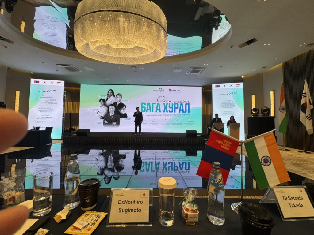 会場では、日本のみならず、インド・モンゴル・韓国をはじめとする各国の歯科医師と意見交換を行い、世界基準の歯科医療について多くの知見を得る貴重な機会となりました。